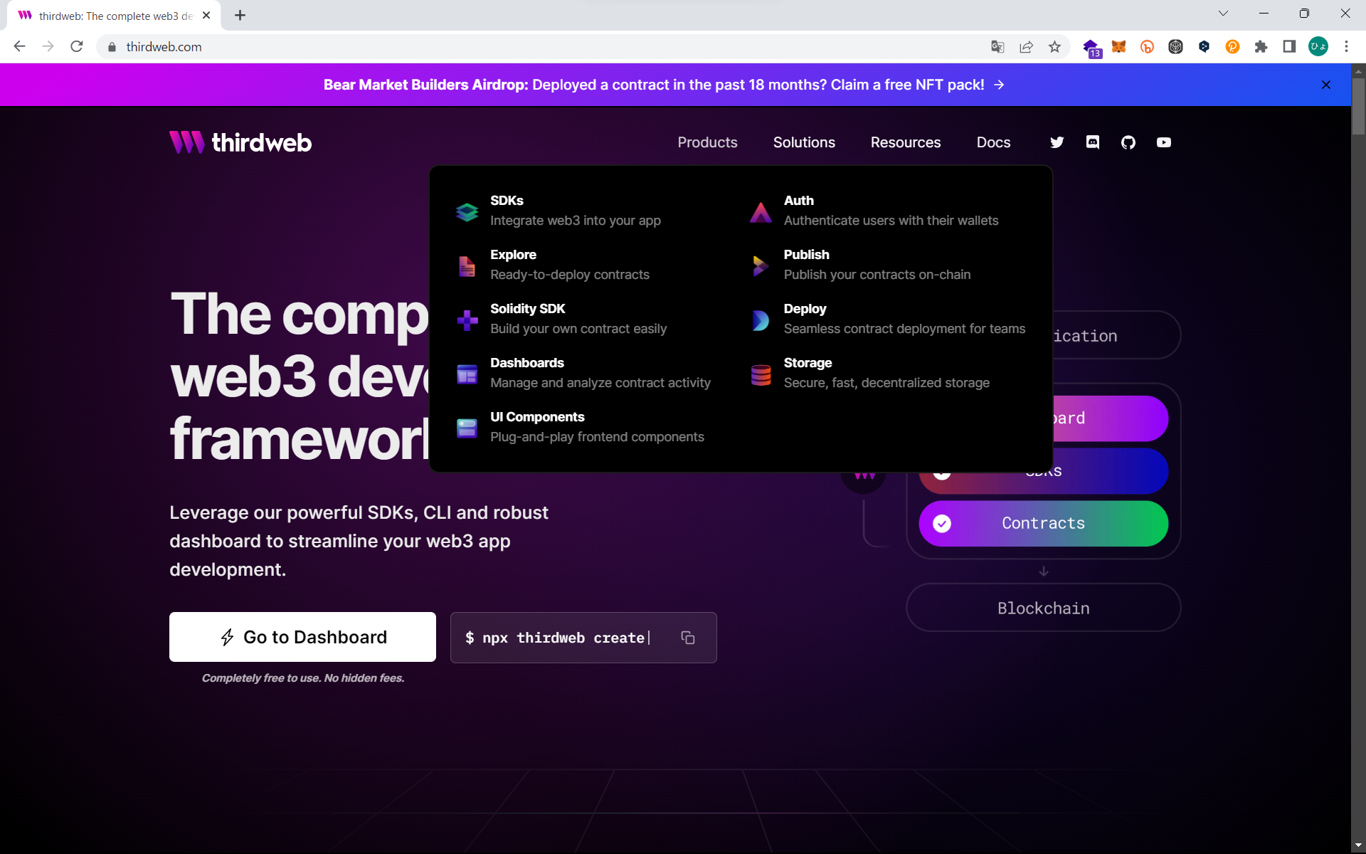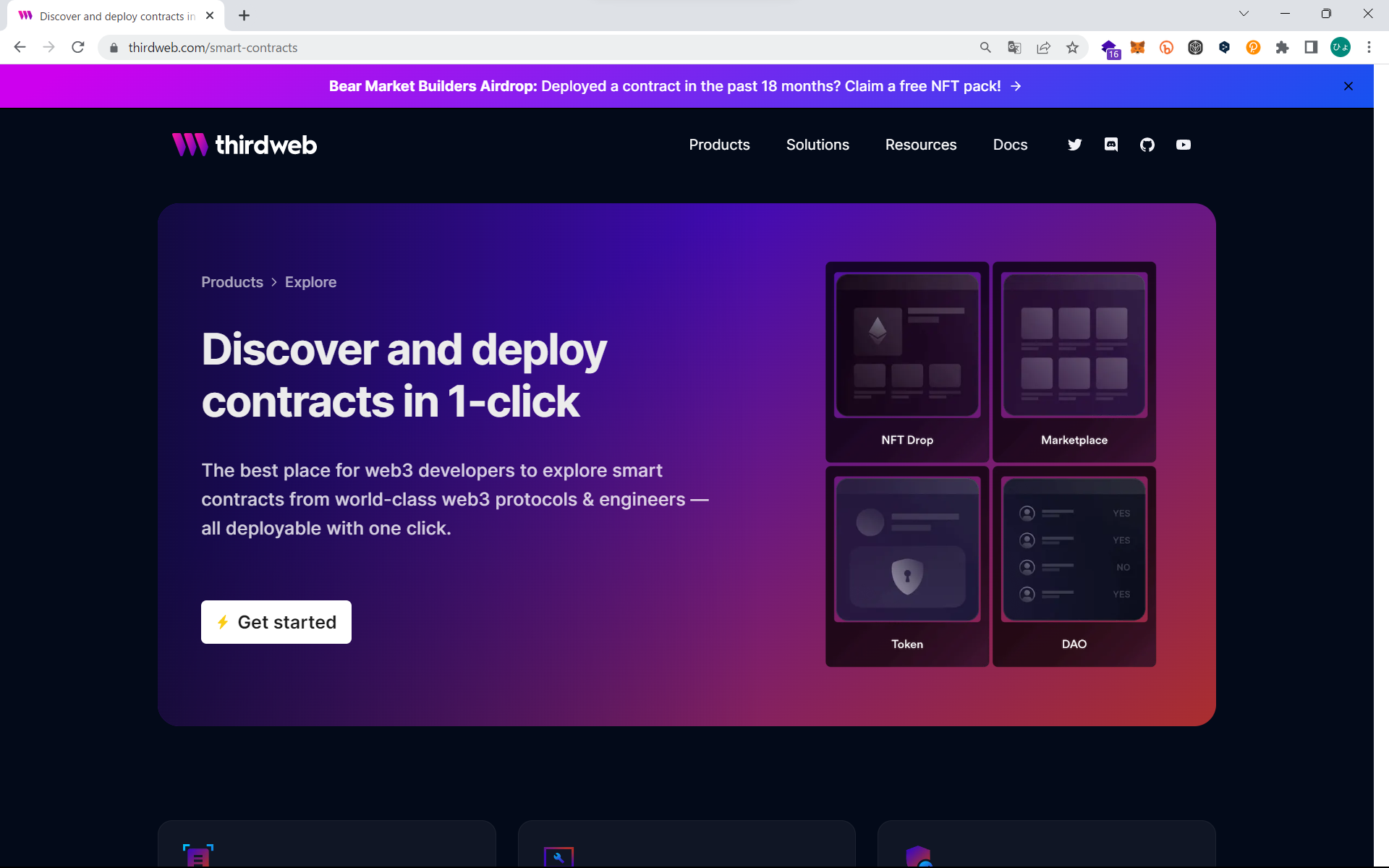 下記の「thirdweb」のサイトへアクセスをしてから手順を進めます。