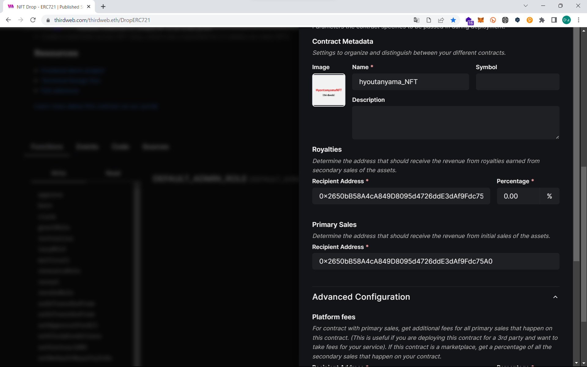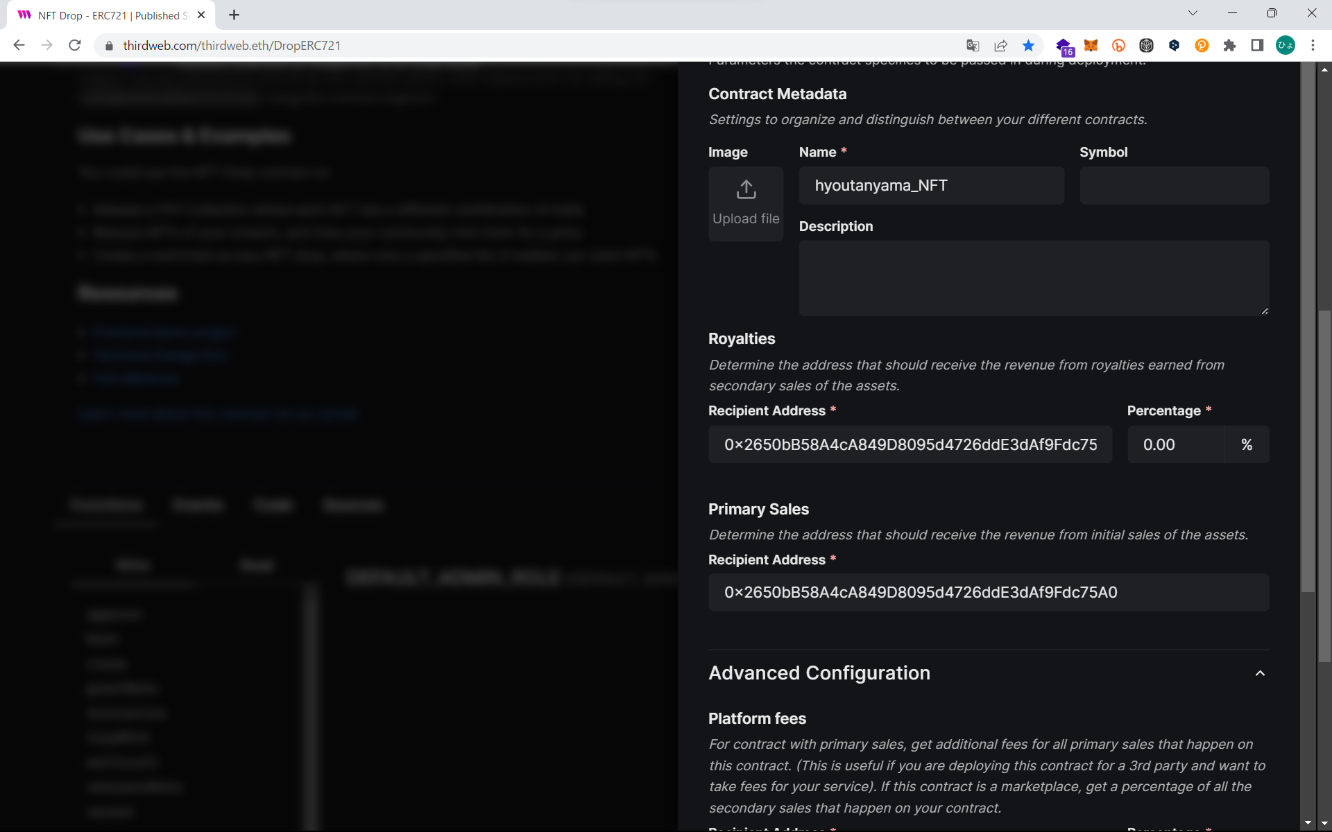 設定をしながら改めて思ったことは「契約」「請求」「鋳造」と言った用語が多いことです。金融・資産取引の代替サービスであることを改めて認識しました。