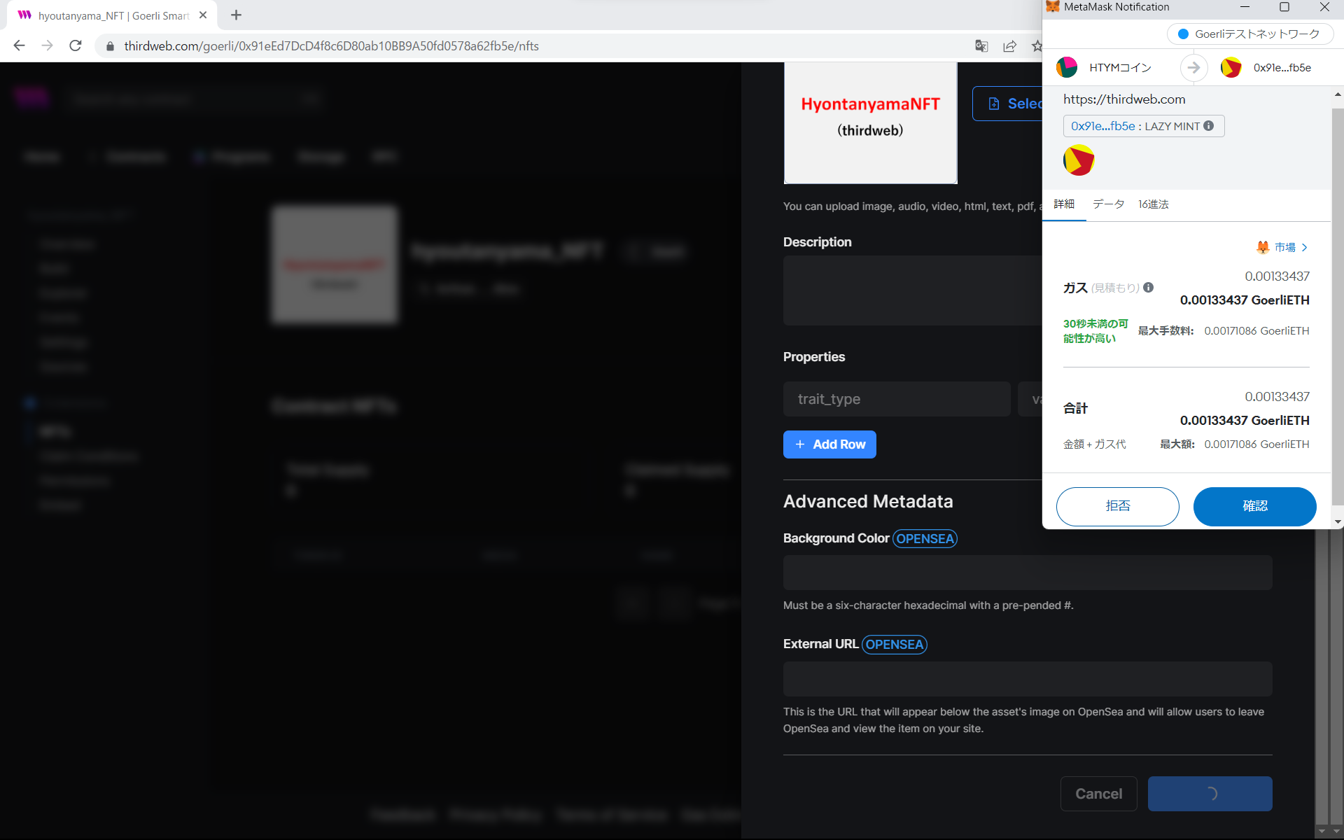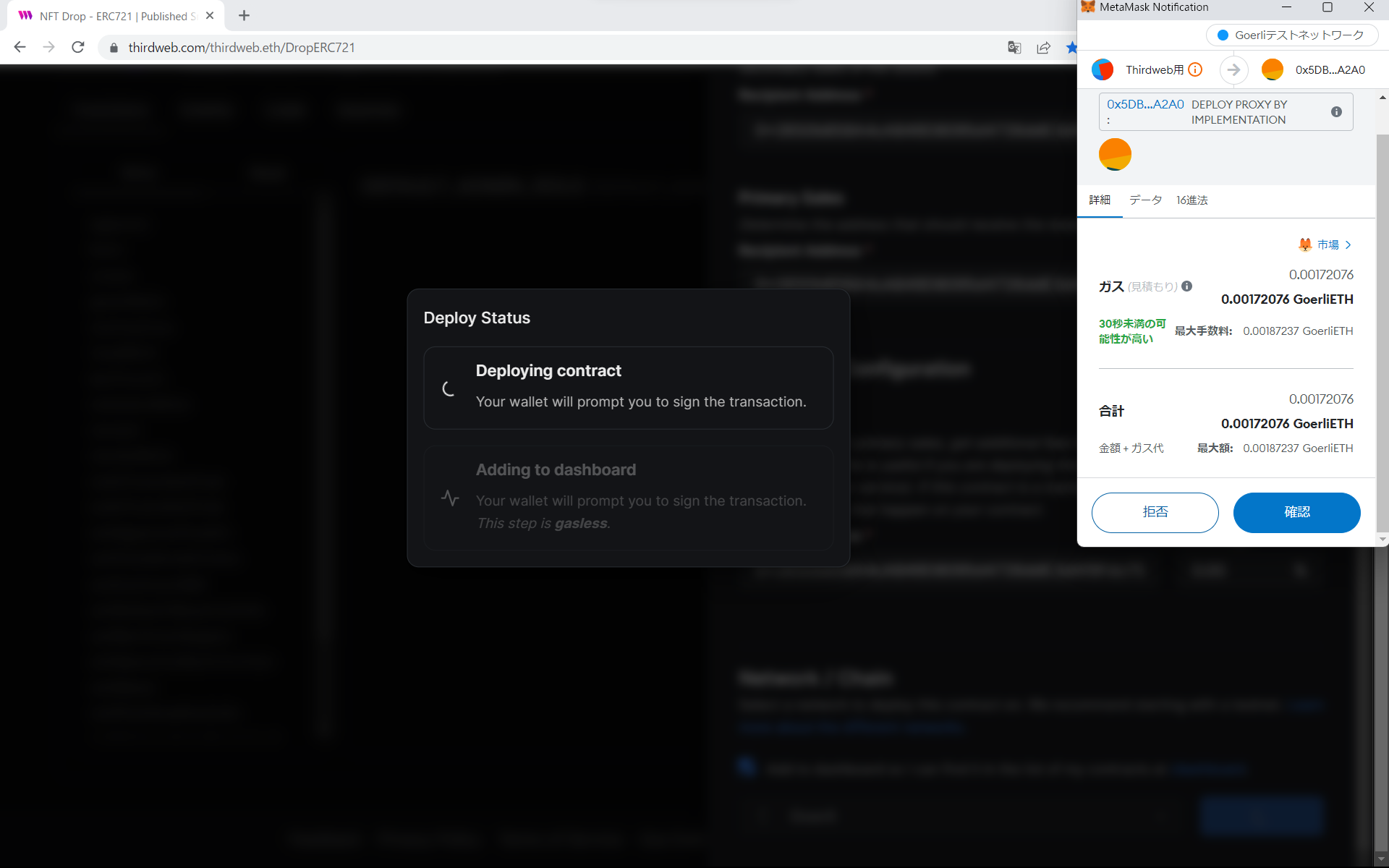 ※Goerli ETHが足りない場合は、取得してから再挑戦をしてください。