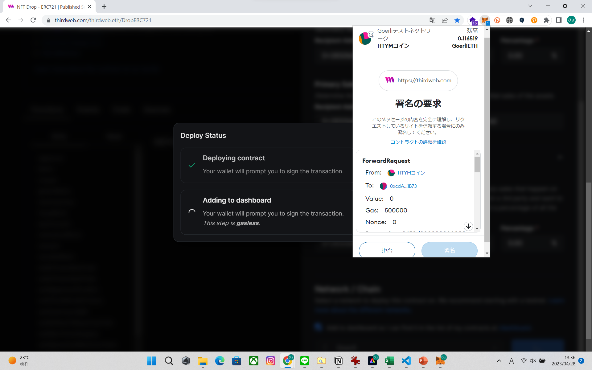 13. ガス代の請求に対応 ※MetaMask上で問題なければ [確認] を押下