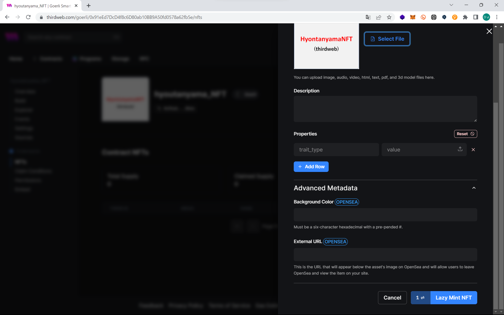 - 「thirdweb」内の管理画面でミントしたい画像の登録 (単一/複数)