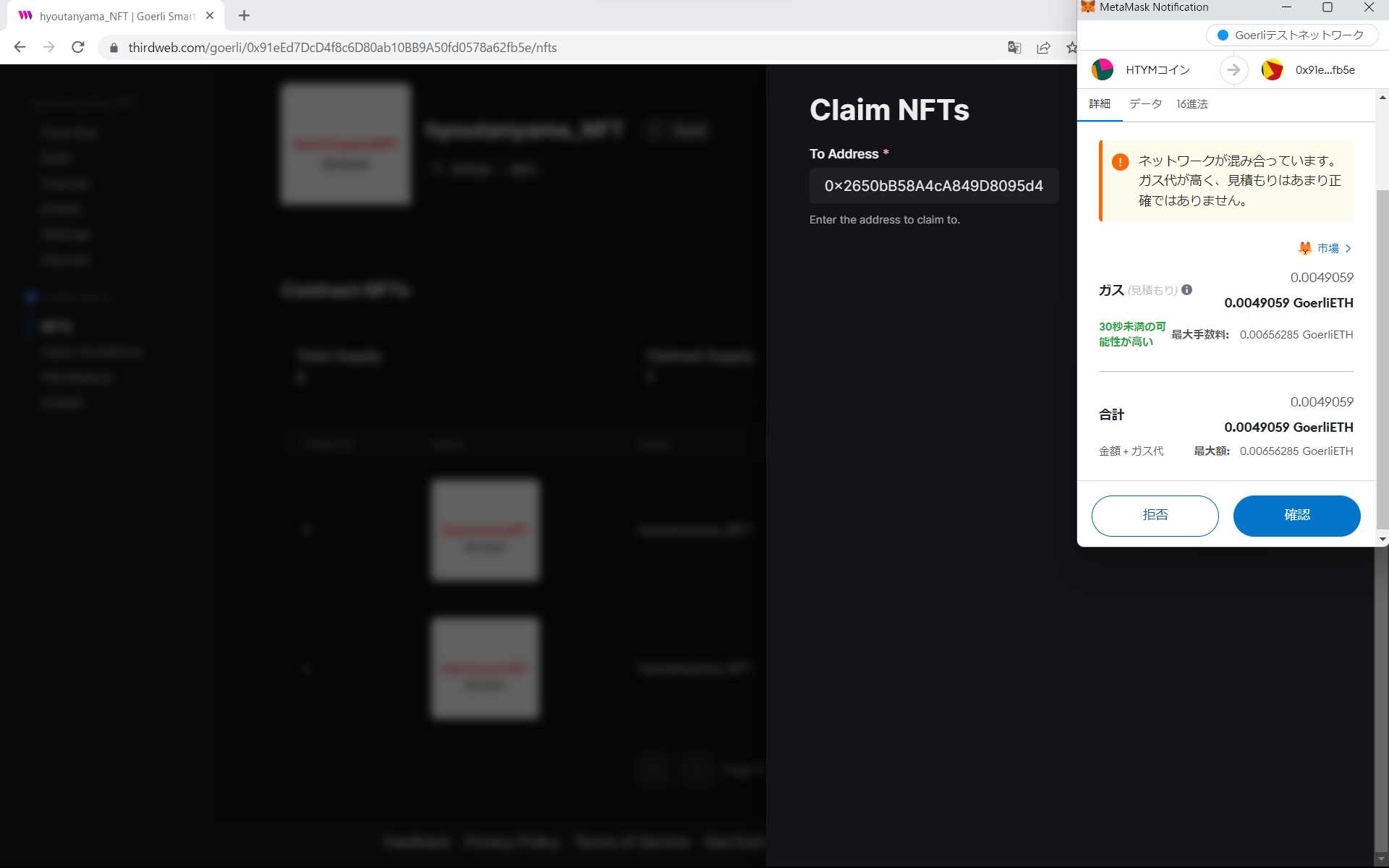 8. ガス代の請求に対応 ※MetaMask上で問題なければ [確認] を押下