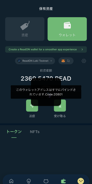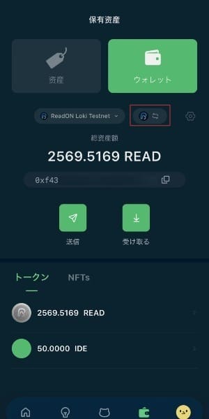 ウォレット切り替え後にテストで記事のPickをしたり、ReadON Walletを使用するともらえる報酬を受け取った為、READトークンの数値が変わっています。