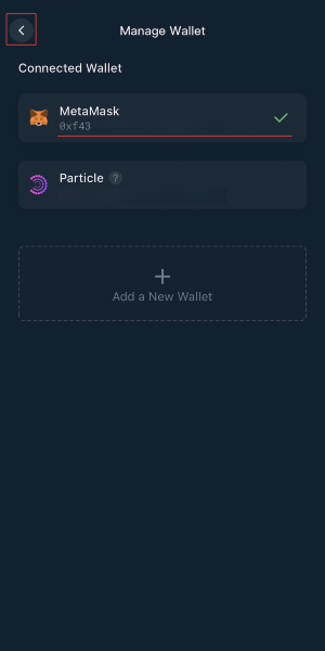 ⑤ ①と同じ操作で接続先のウォレットを見る。MetaMaskが消えていることを確認。([<] ボタンで戻る)
