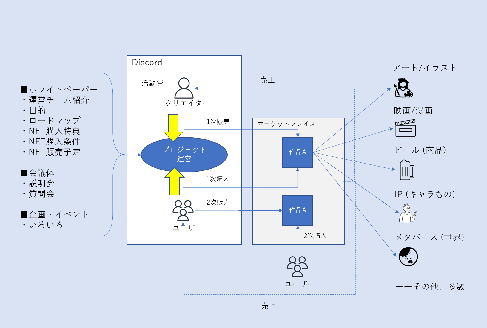 その様な好循環な状況を作り出すためにも、NFTプロジェクトの価値を高め続ける必要があり、ファンも自然とコミュニティに貢献 (運営のお手伝い) する流れが生まれやすいという特徴があります。