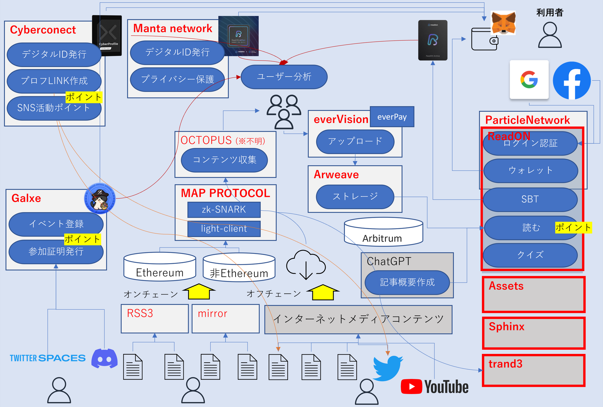 「Read to Earn」の「ReadON」アプリは、web3系の情報を得るのに便利なため、ほぼ毎日利用しています。過去記事では、さらっとアプリの使い方や経済圏の構築イメージを書きましたが、今回は、外部サービスについて書きたいと思います。